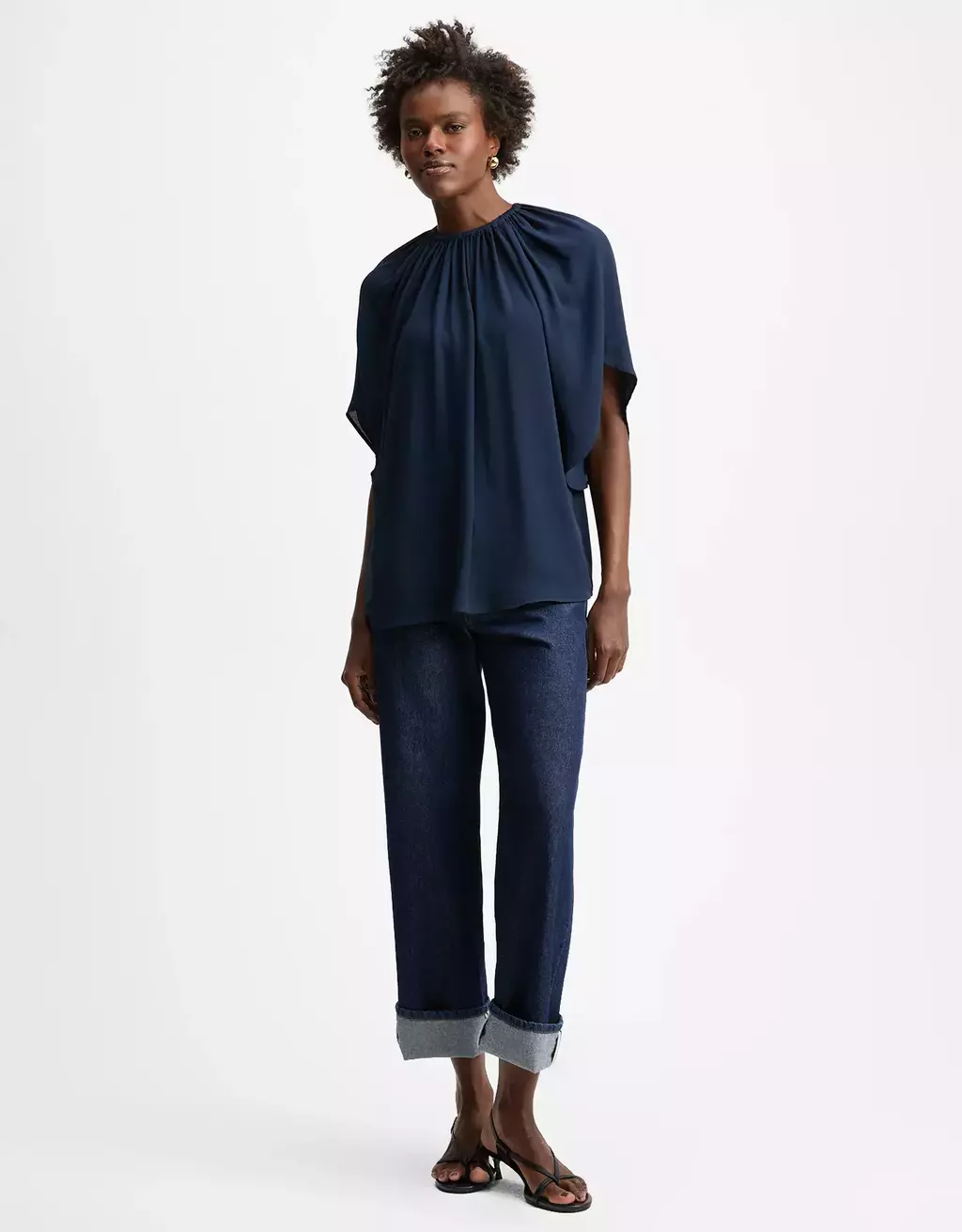 Blusa Alongada Elástico Gola Marinho - Shoulder