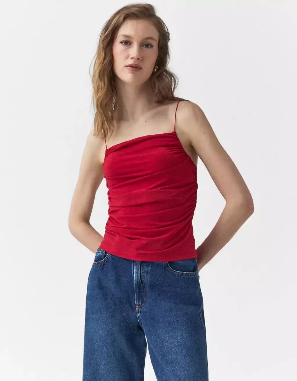 A Blusa Malha Alça Fina Vermelha - Shoulder é a peça essencial para quem busca uma combinação perfeita entre simplicidade, conforto e um toque de ousadia. Confeccionada em malha macia e leve, ela proporciona uma sensação de frescor ideal para o clima brasileiro, ao mesmo tempo que valoriza a silhueta com seu design de alças finas delicadas.