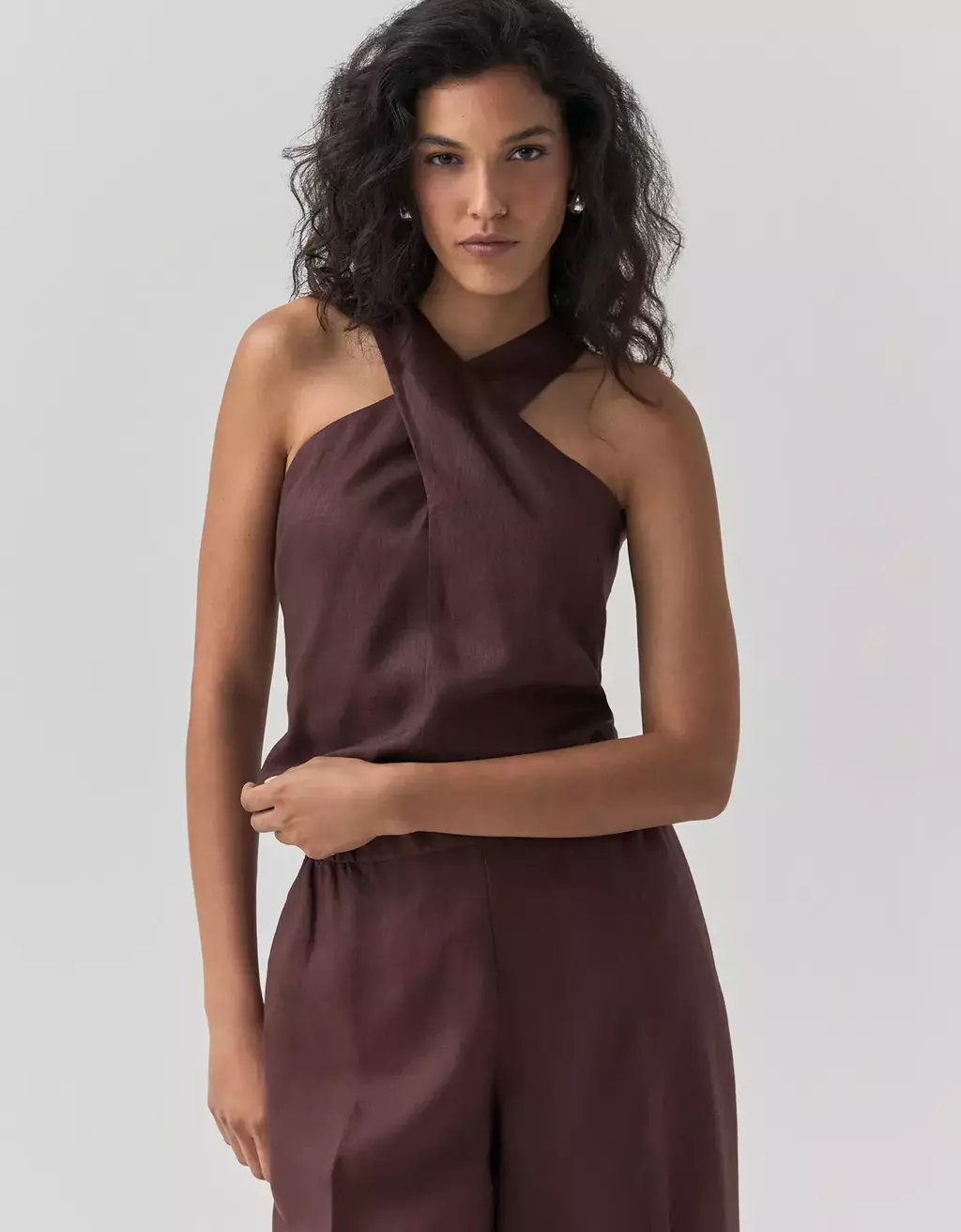 Descubra a elegância e o conforto da nossa Regata Decote Transpassado feita em linho na sofisticada cor café. Com um design moderno e acabamento impecável, essa peça é perfeita para quem busca versatilidade e estilo em qualquer ocasião.